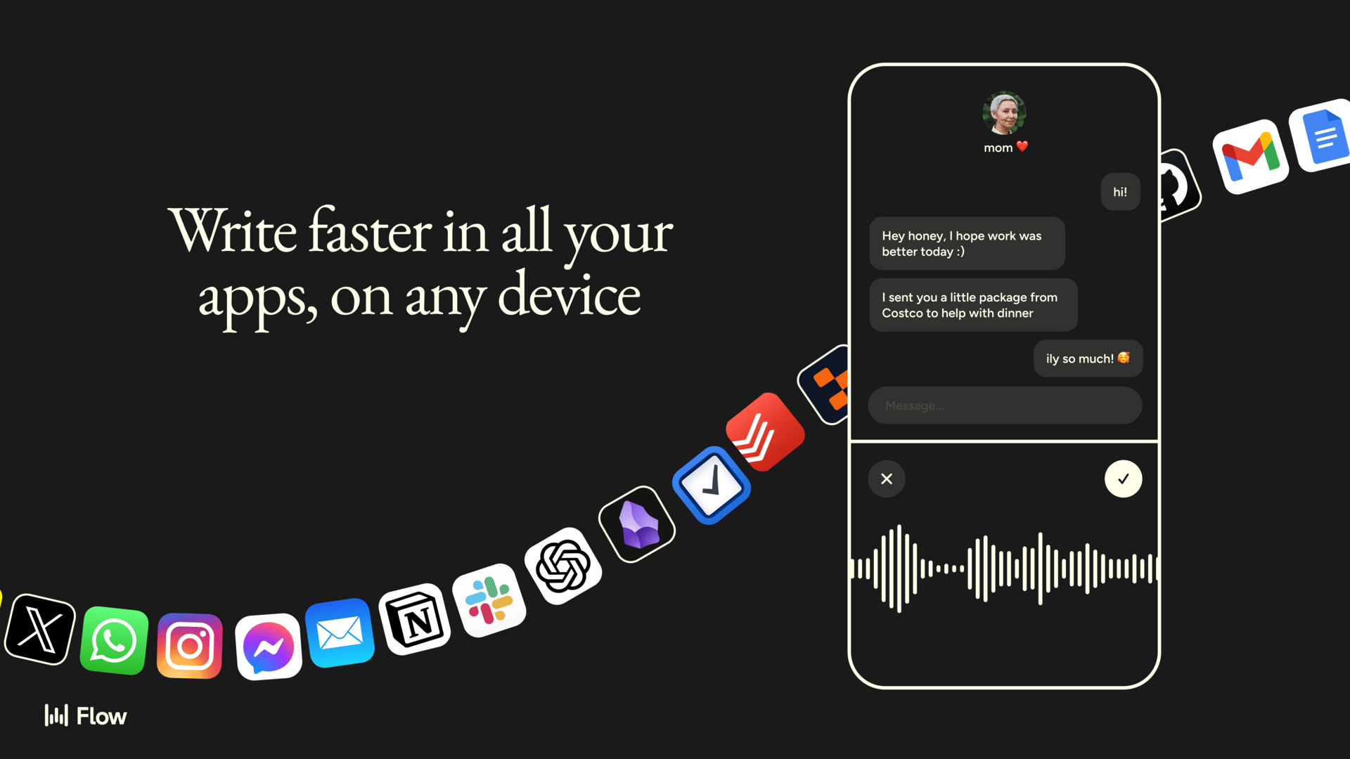 Dictate freely - Wispr Flow removes filler, fixes punctuation, and formats your ideas so you can move faster across email, Slack, docs, and prompts.